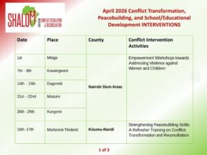 Working to End the Cycle of Inter-Ethnic Violence, Religious Ideological Extremism, Violence against Women and Children, School Educational Development, and Prevention of Human and Organ Trafficking in the Tribal Lands of Eastern Africa and Informal Urban Settlements. We are Empowering Local Communities to be the Architects of their Own Interdependent Future of Reconciled Co-existence.